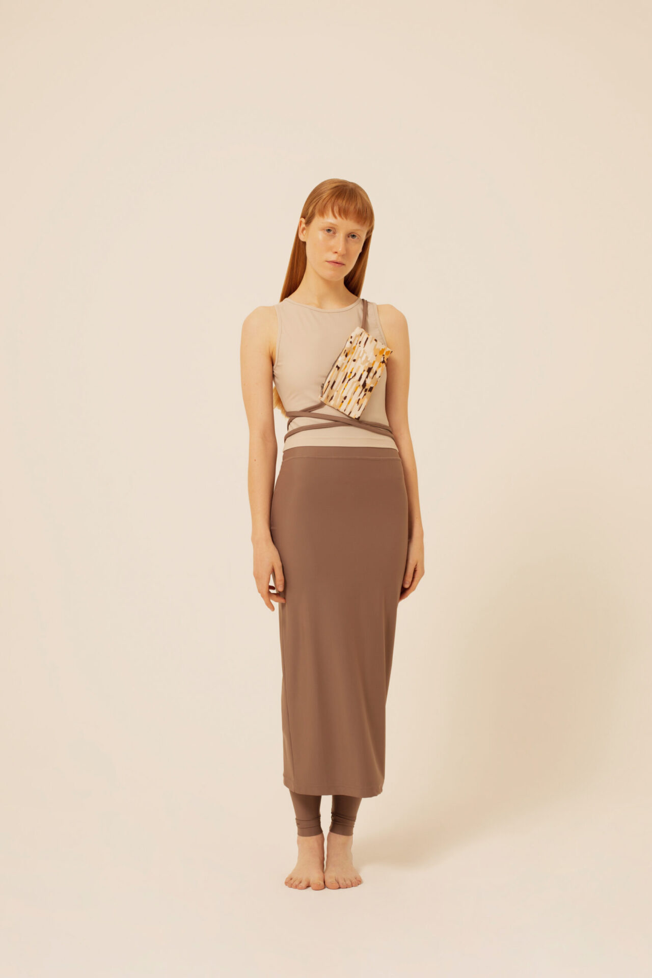 GAIA è un accessorio estremamente versatile che può essere utilizzato come marsupio, tracolla o pochette, combinando in modi diversi i suoi lunghi lacci. Questo e tutti gli altri accessori della collezione sono confezionati utilizzando i tagli residui di produzione e progettazione, cui viene data una seconda vita e un nuovo design, per realizzare pezzi unici e sempre diversi.