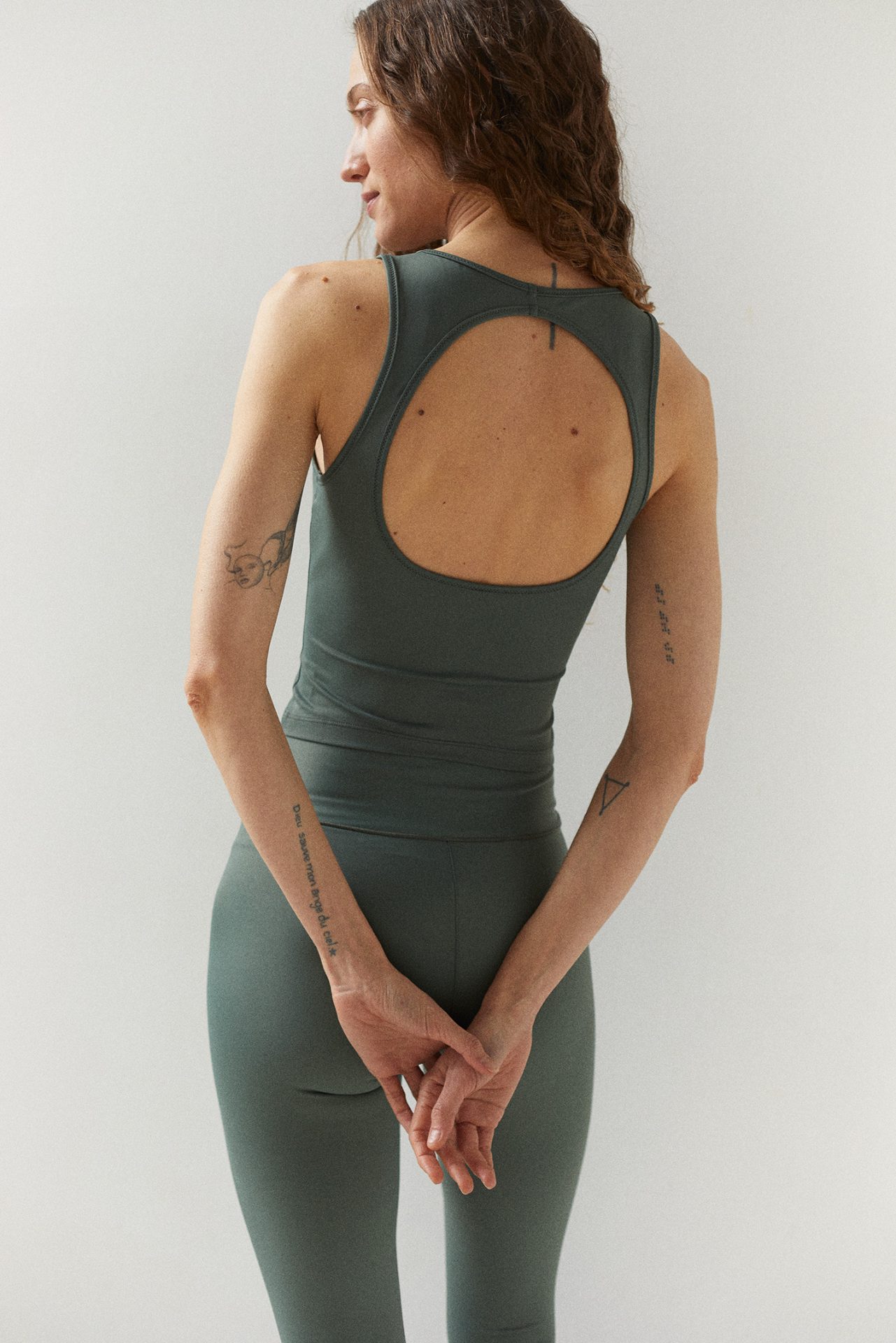 Il tank top yoga MELINA, realizzato in Econyl®, ha un fit aderente ed uno stile contemporaneo. E’ impreziosito dallo scollo all’americana sul davanti e l’apertura a oblò sulla schiena. La profonda apertura sul retro, ricorrente in molti prodotti della collezione, è una scelta stilistica come metafora di gratitudine e apertura al passato.